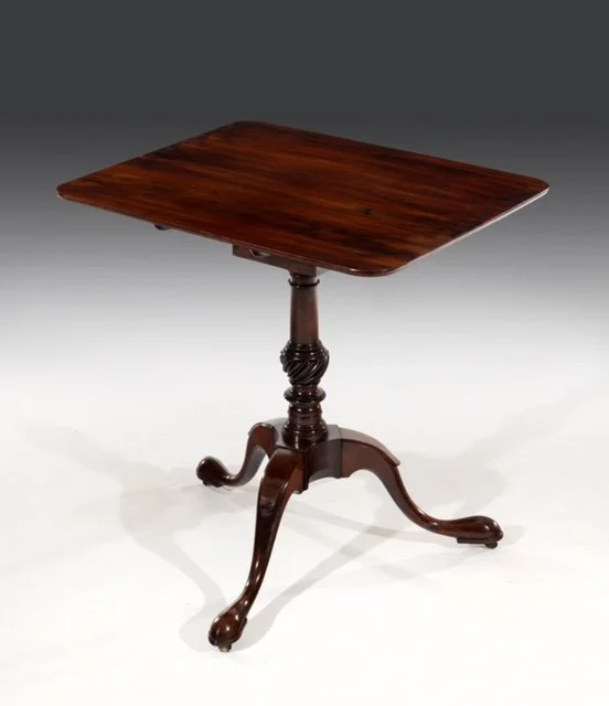 A fine George III mahogany tilt-top tripod table with moulded legs & carved pad feet. £2950 Circa 1760 Width: 26.06" / 66.20 cm Depth: 21.46" / 54.5 cm Height: 27.95" / 71 cm Get in contact